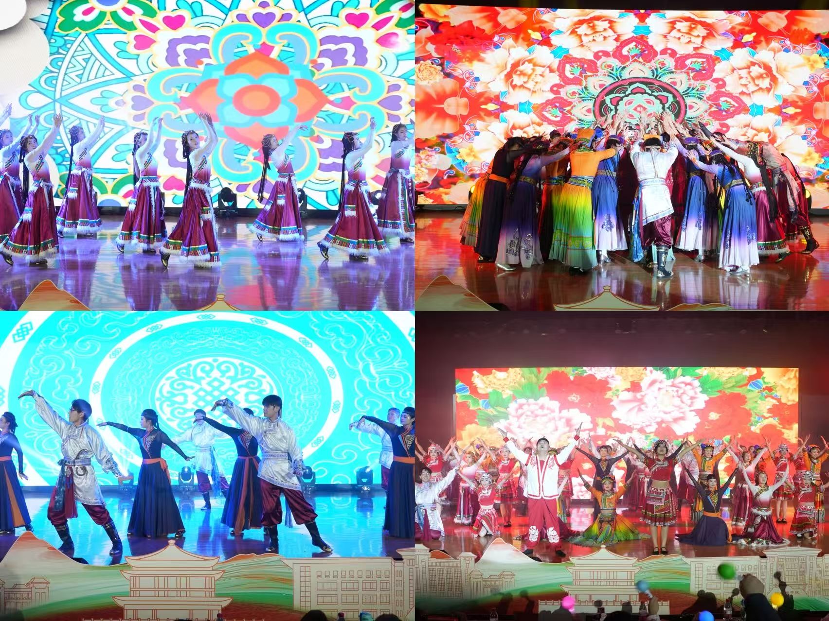 研究生会文艺部牵头组织了由藏族、蒙古族、苗族、哈尼族、维吾尔族五个民族舞蹈组成的舞蹈训练营。日常训练中,组织者精心筹备,专业舞蹈老师逐帧纠偏,同学们对着镜子弓腰甩袖、屈膝提腕,反复记忆动作细节。在迎新晚会的舞台上,表演者们以身为笔讲述了不同民族的风情,用裙摆翻涌成团结的浪潮。