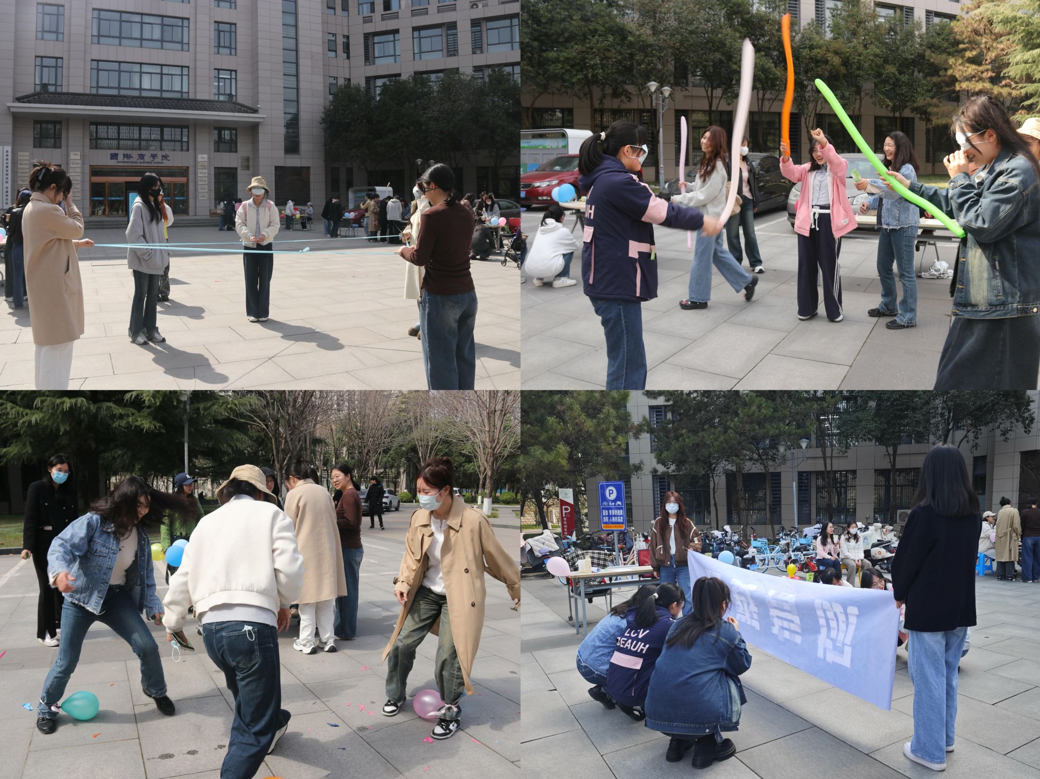 文艺工作部精心策划了春季游园会活动,邀请广大师生共赴这场春日之约。春风作序,万物和鸣,同学们穿梭在十二个游戏摊位之间,通过玩游戏集印章兑换精美礼品。活动现场氛围热烈,无论是考验反应速度的“踩球飞扬”比拼,还是考验精准投放的“套圈投壶”游戏,都展现了同学们积极向上的精神风貌。