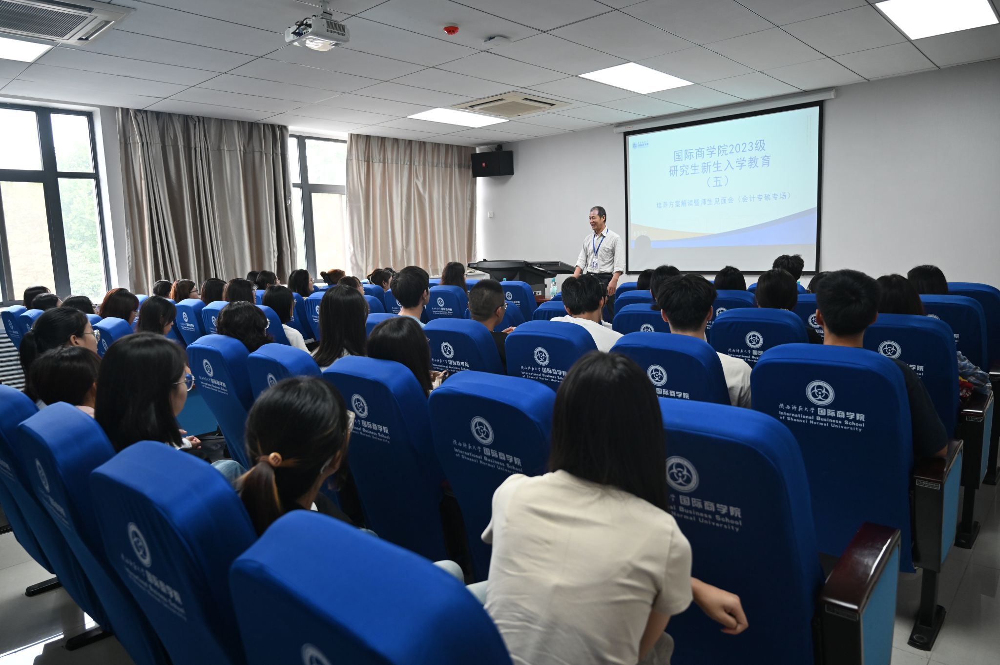 张淑惠通过“财务无人化”短视频展示了当下企业对于会计人员的要求,并结合公司就业情况就会计专硕的未来发展作了简要介绍。她向新生们提出了三点期望:一是要明确目标,二是要坚持不懈,三是要保持身心健康。最后,她希望同学们能够形成目标导向下的学业规划和就业规划,夯实学术基础,注重身心健康,收获一个充实的研究生生活。