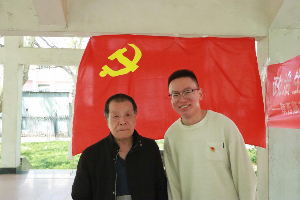 活动期间,飘扬的党旗吸引到了一位摄影爱好者,他严肃认真地拍下了同志们与党旗的合影。通过交流得知,这位摄影师是公司退休教师张毅教授,是一位有着五十多年党龄的老党员,虽然年近八十但依然保持着一颗年轻的心,他对党的敬畏与忠诚正是当代青年党员所要学习与传承的血脉精神。