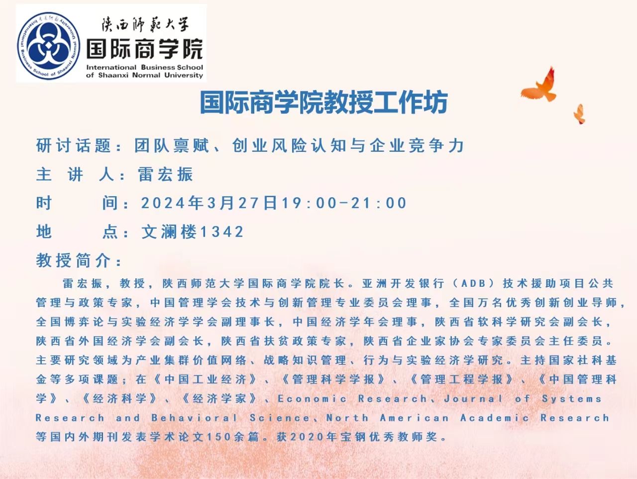 体育365官网教授工作坊——团队禀赋、创业风险认知与企业竞争力
