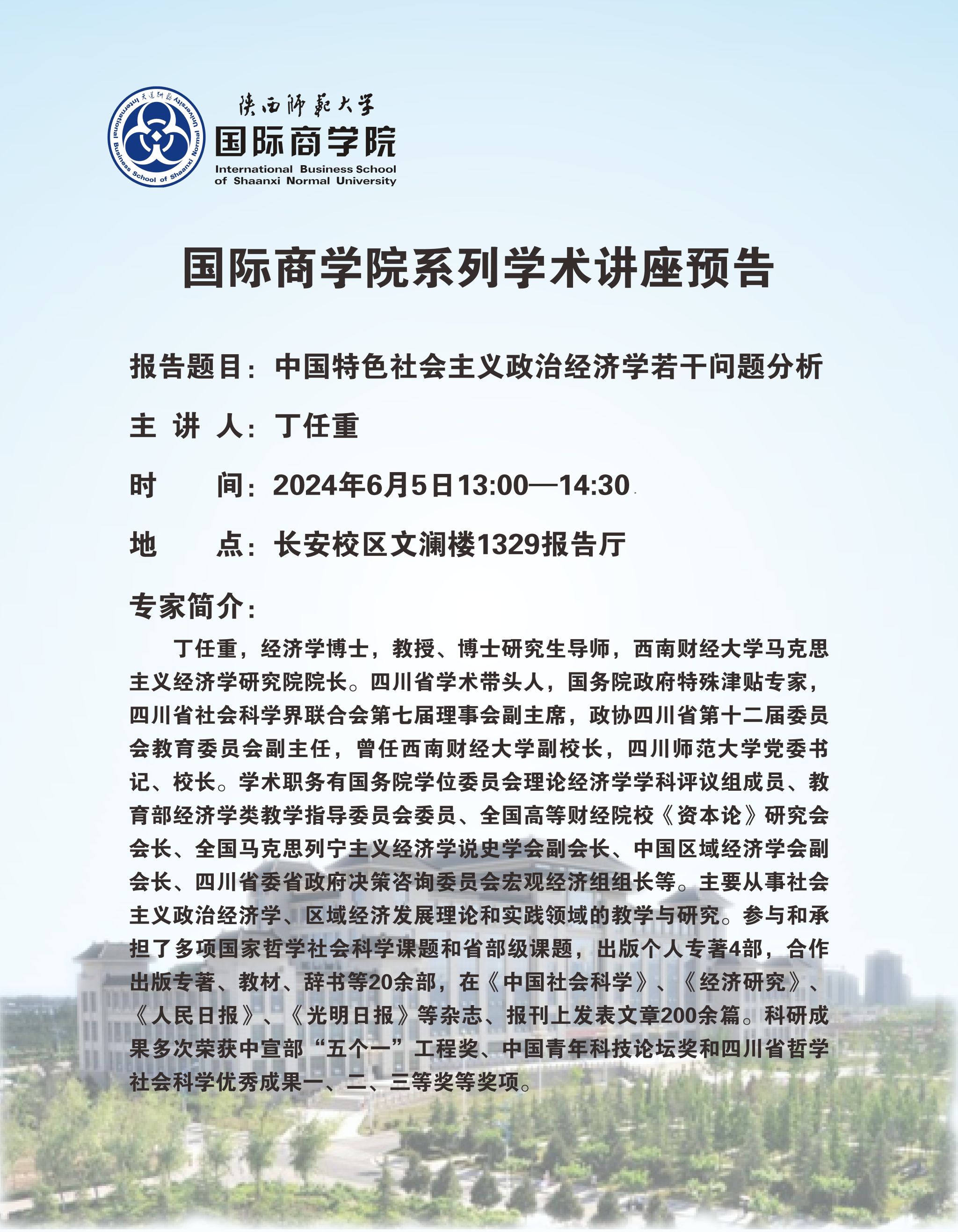 学术讲座预告——中国特色社会主义政治经济学若干问题分析
