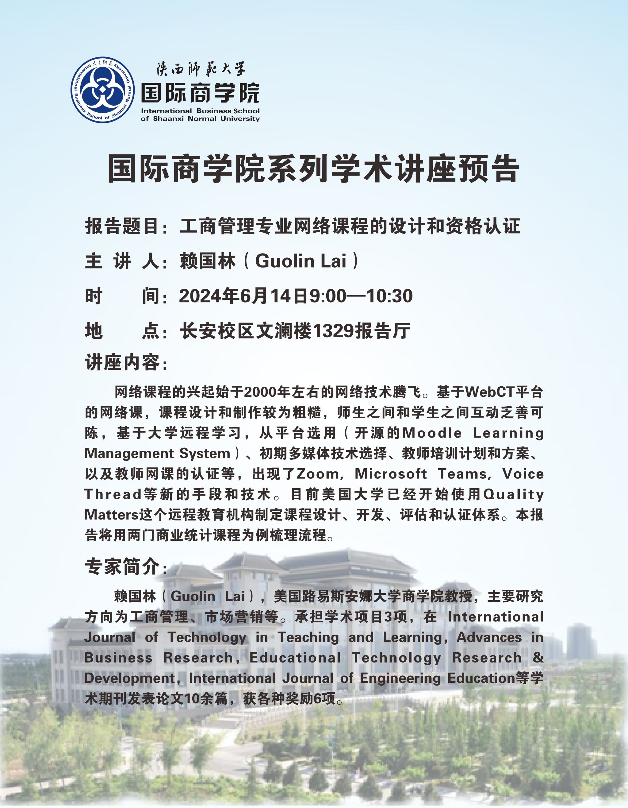 学术讲座预告——工商管理专业网络课程的设计和资格认证