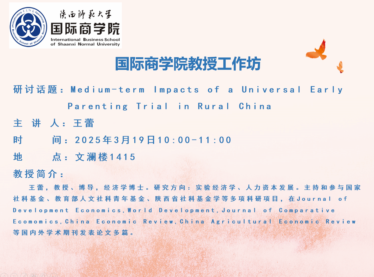 体育365官网教授工作坊——Medium-term Impacts of a Universal Early Parenting Trial in Rural China