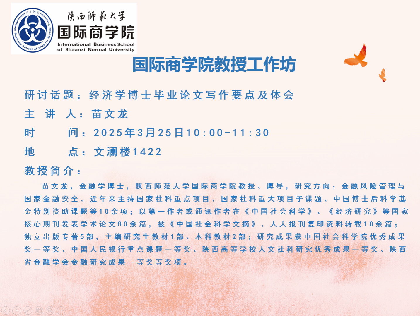 体育365官网教授工作坊——经济学博士毕业论文写作要点及体会
