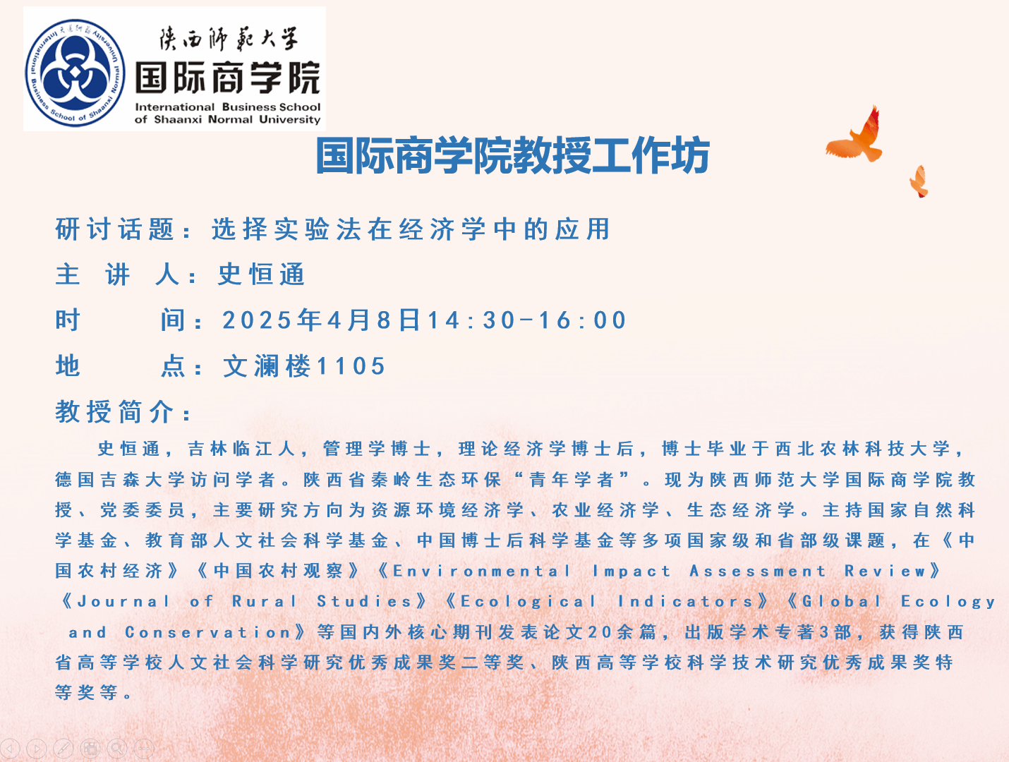 体育365官网教授工作坊——选择实验法在经济学中的应用