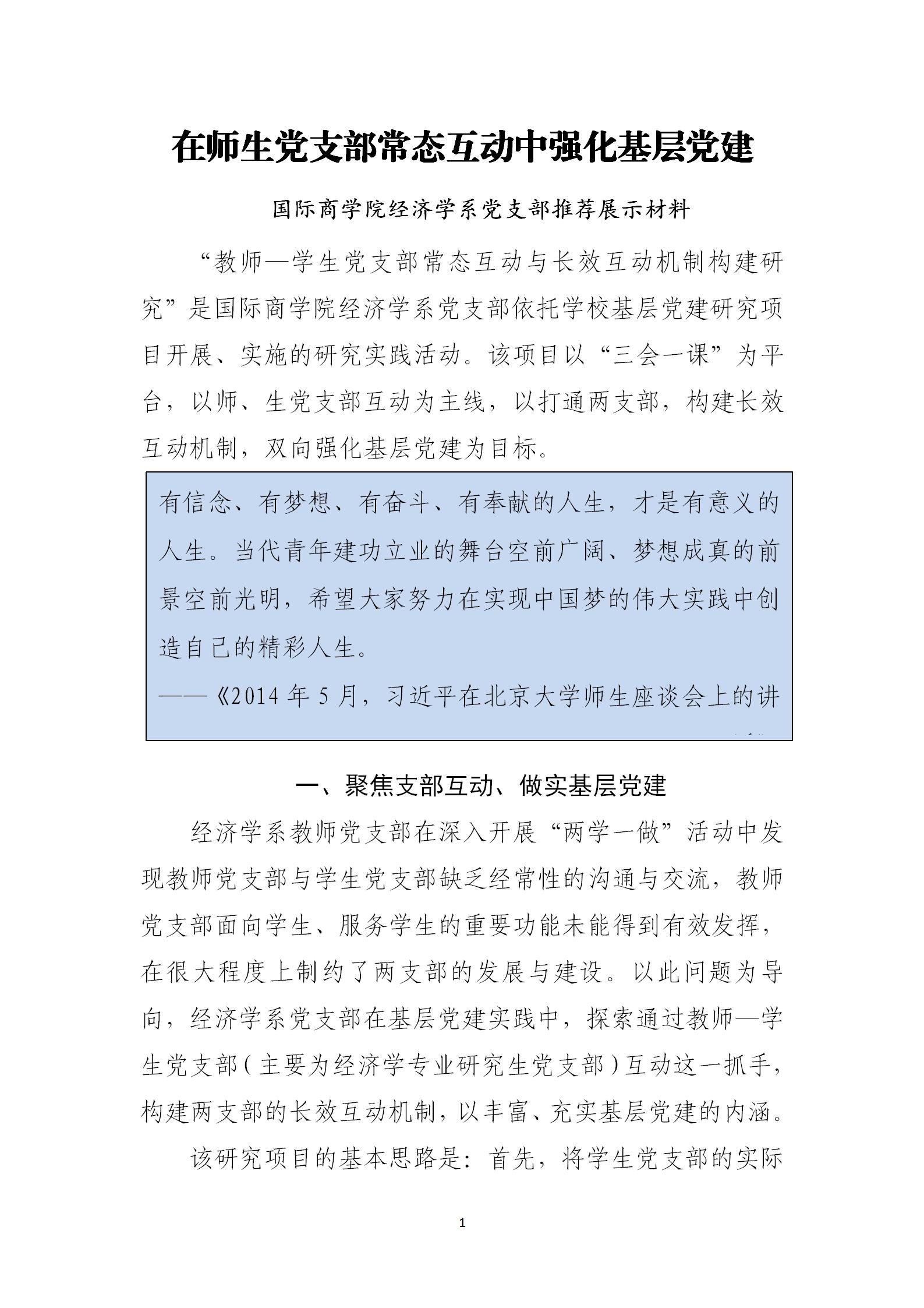 在师生党支部常态互动中强化基层党建——体育365官网经济学系党支部推荐展示材料