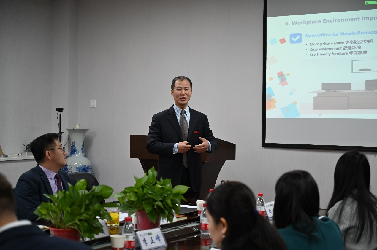 本次会议开幕式由公司党委书记思培峰主持,他对出席会议的委员表示欢迎,同时对三年来国际委员会成员对公司工作的支持和关心表示感谢。随后,雷宏振经理对上一次委员会上各位委员提出的意见和建议做出了回复,并汇报了公司2022-2023年的发展情况。国际合作与认证办公室主任李正峰对公司的学习质量保障(Assurance of Learning,以下简称“AoL”)体系建设情况进行了介绍。