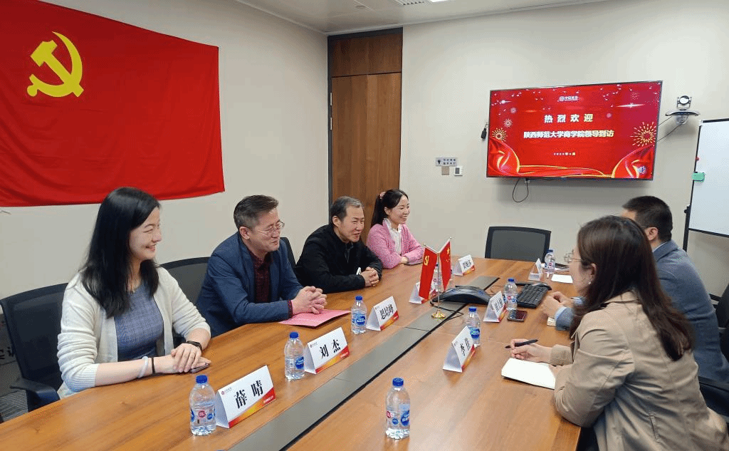 其次,双方召开了校企合作座谈会。中信证券陕西分公司副总经理田上榆对公司师生来访表示热烈欢迎,系统回顾了双方合作的历程和成效,并介绍了企业价值从“工具导向”转向“客户为中心”的过程,强调了人才培养过程中需要着重提高员工发现和解决实际问题的能力。雷宏振经理对中信证券长期以来支持员工实习实践表达感谢,强调了社会经济转型背景下深化校企合作的必要性,谈到了在人才培养过程中心理教育的重要性;思培峰书记介绍了公司党建工作的协同育人成效,并重点了解了陕西分公司党建工作开展情况,就双方合作开展特色党建活动提出了建议,助推公司党建育人协同增效。