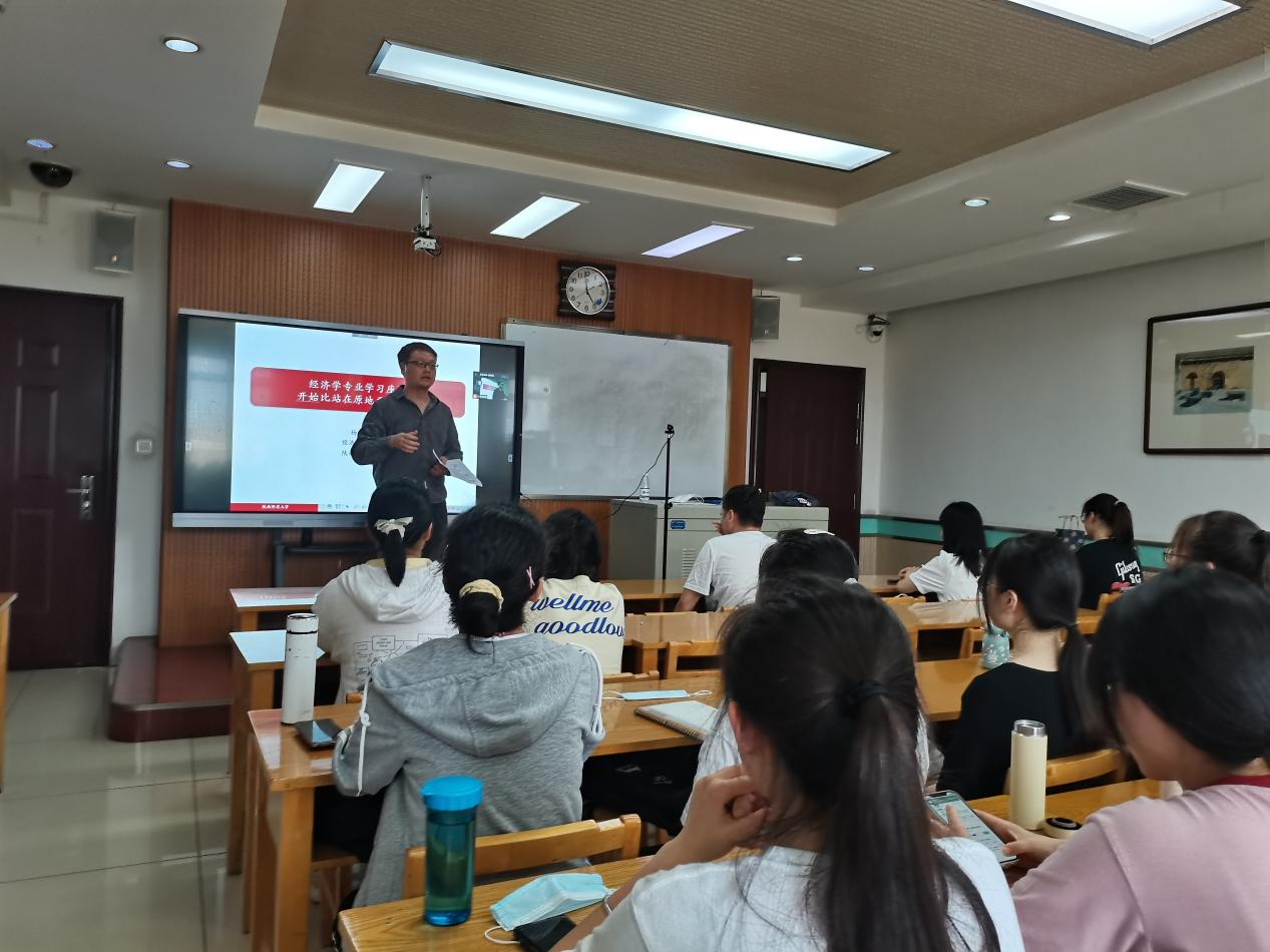 5月25日下午,体育365官网经济学专业学习座谈会在文津楼1524教室、1525教室和线上同时举办。院教学副经理尹海员、系主任王文军、经济学系部分教师和2021级、2020级、2019级经济学专业员工参加了座谈会,会议由经济学系支部书记、系副主任史恒通主持。
