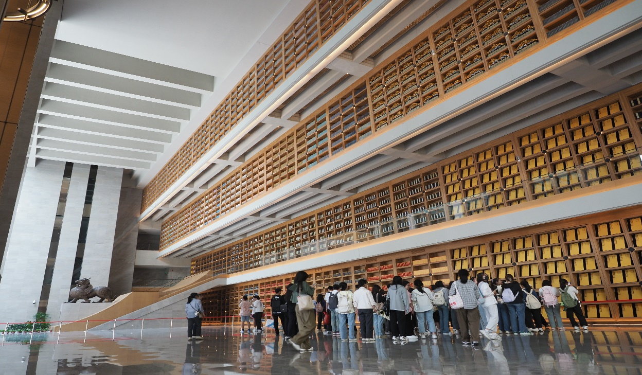 最后,在讲解员的带领下,师生参观了保藏中心的文济厅和“褚墨遗珍 万里同风——丝绸之路版本展”主题展厅,全体师生直观真切地感受到了千年丝路文明的独特魅力。