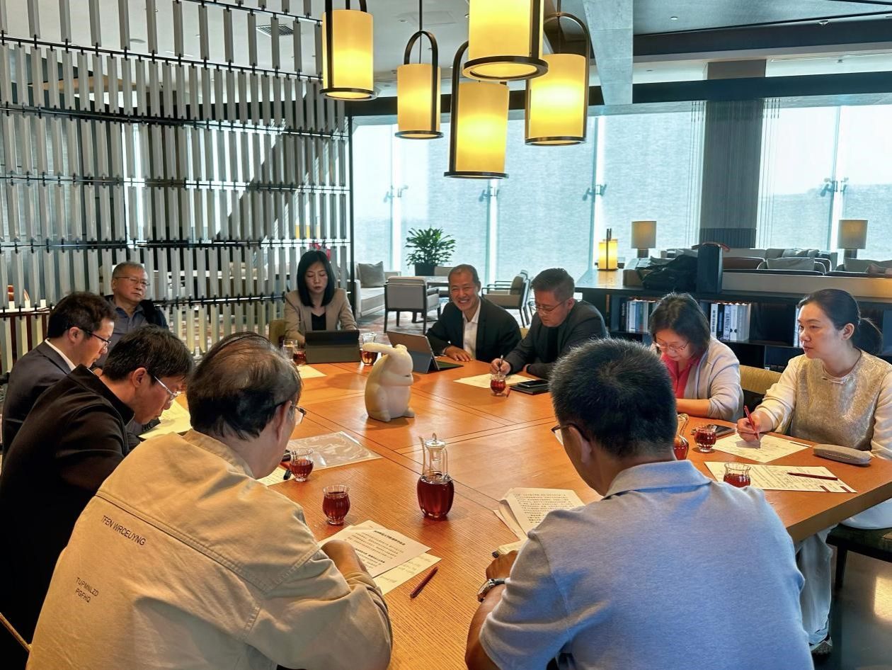 2024年10月16日上午,公司经理雷宏振、党委书记思培峰、副经理张淑惠、杨静及财务与会计系仇萌与公司杰出员工企业家、众合创投公司董事长聂新勇一行进行深入交流座谈,座谈旨在促进公司与员工企业在智能财务领域的深度合作。