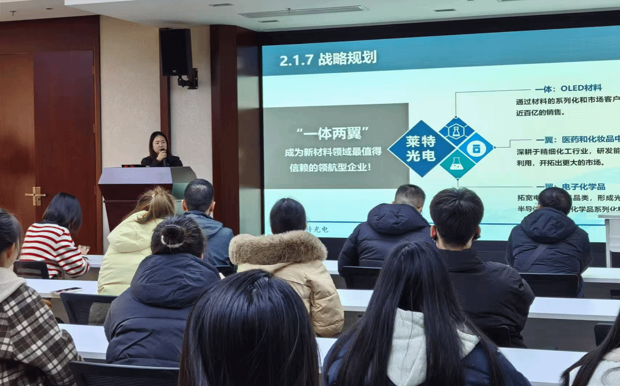 陕西莱特光电材料股份有限公司,作为行业内的佼佼者,其发展历程充满了创新与挑战。活动伊始,莱特集团的人力资源部张部长及骆经理热情接待了师生一行,并详细介绍了企业的基本情况。从莱特集团的初创岁月到莱特光电的快速成长,每一个关键节点都彰显了企业在光电材料领域的深厚积淀与前瞻视野。通过这段历史回顾,同学们不仅对企业有了初步的认识,更被其不断追求卓越的精神所感染。