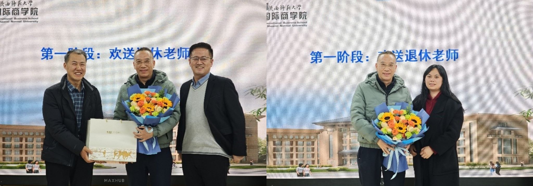 会议第二阶段为欢送退休教师,由行政副经理杨静主持。退休教师周晓唯作了荣休发言,教师代表朱雅玲为退休教师献上鲜花,思培峰书记、雷宏振经理为退休老师赠送纪念品,表达祝福。