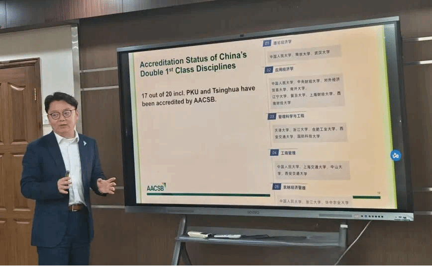 接下来,AACSB东亚区负责人徐国栋先生深度解析了中国高校AACSB认证现状,详细介绍了AACSB认证标准与流程。他提到,教育部对提升高校国际影响力及推进国际认证的重视程度持续提高,AACSB也在积极拓展与教育部的合作路径,致力于获得中国官方的认可与采纳,从而为AACSB认证院校带来更多切实的、显著的发展利好。