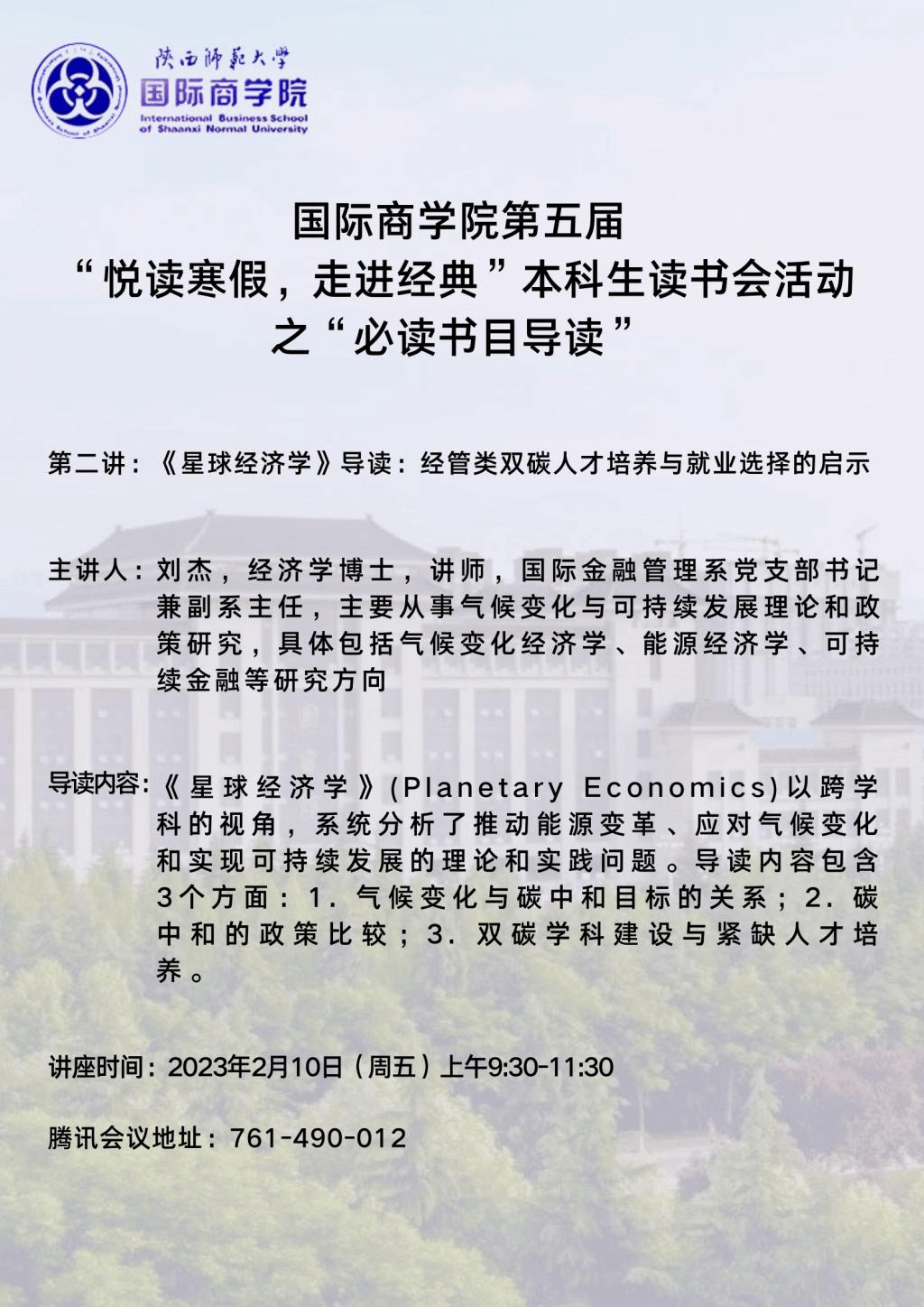 体育365官网第五届“悦读寒假,走进经典”本科生读书会活动之“必读书目导读”