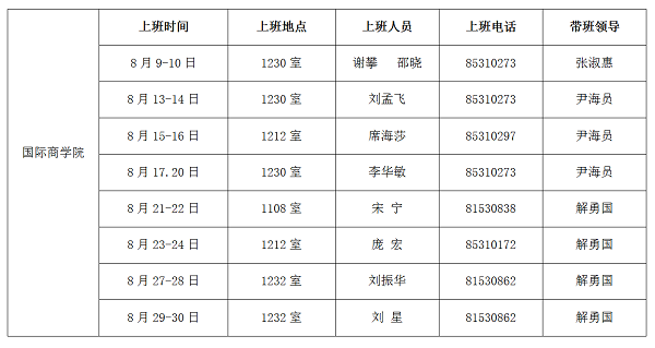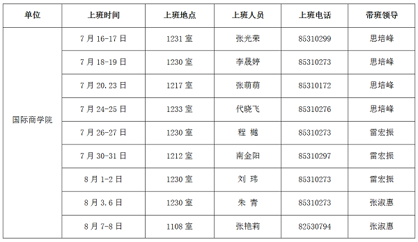 2018年暑假上班安排表
