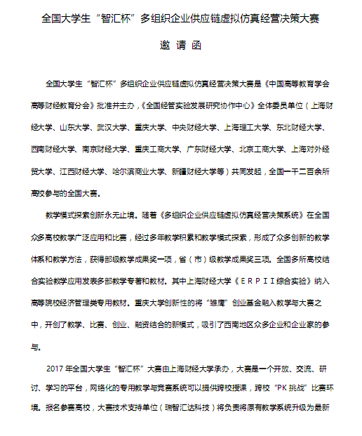 全国老员工“智汇杯”多组织企业供应链虚拟仿真经营决策大赛邀请函