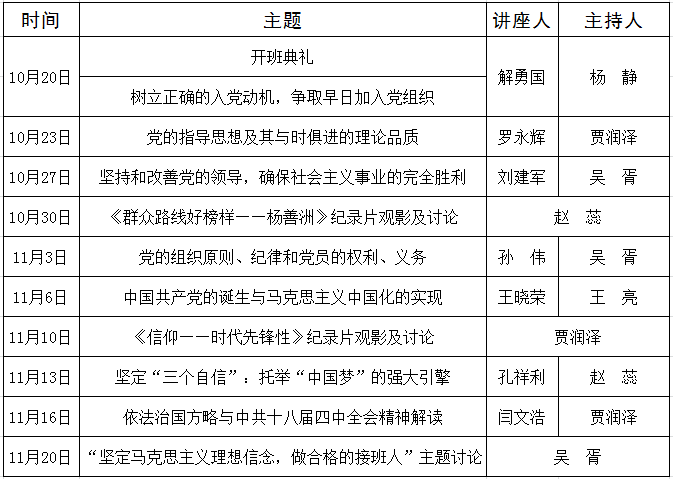 1、请各班级、各专业团(党)支部全面考察、认真选拔,于10月15日下午5时前确定参加党课培训的推荐人选, 10月16日由公司党委会议研究确定培训名单并在全院范围内公示。