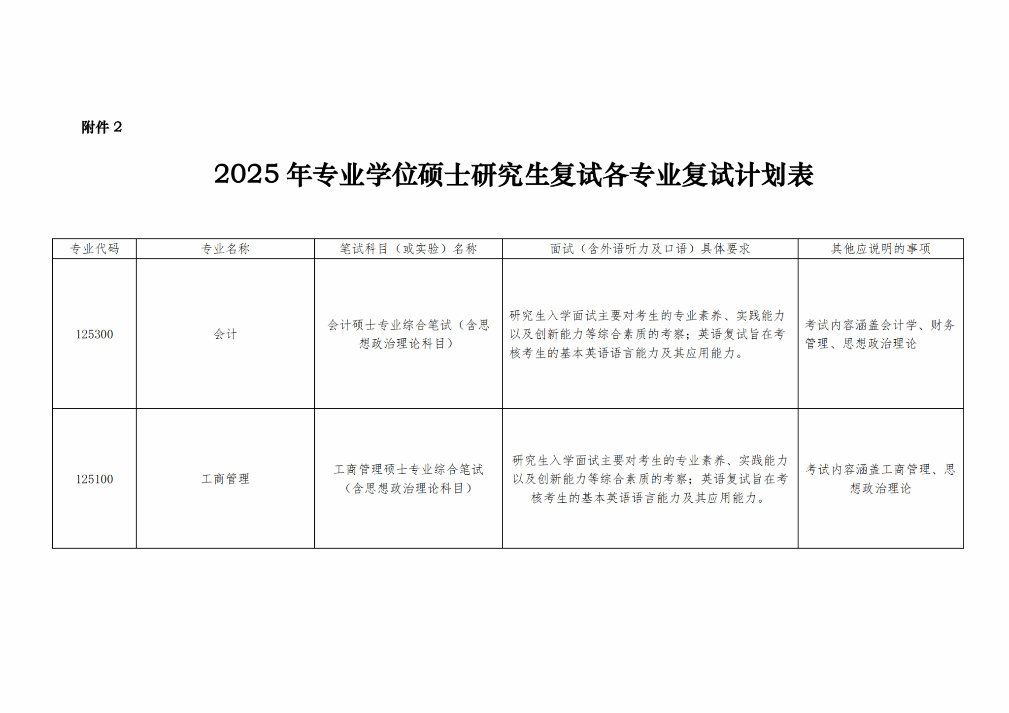 2025年专业学位硕士研究生复试录取工作方案
