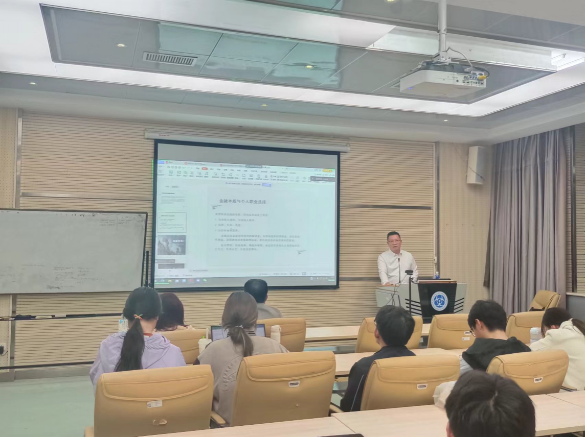 2024年4月14日下午,金融系为2023级举办了金融专业导引暨老员工职业规划专题讲座。系主任梁锶首先向同学们简要介绍金融系的创建历程、雄厚的团队力量以及合理全面的课程设置。裴辉儒为同学们分析在人工智能的背景下结合自身优势和经济发展的客观要求制定职业规划。苗文龙提醒同学们客观冷静的选择专业,不随大流不盲目跟风,并勉励同学们要努力上进,打造属于自己的美好前程。本次专题活动旨在人工智能的快速发展以及我国面临经济下行压力的现实背景下,帮助同学们客观理性分析并合理开展学业及职业规划。