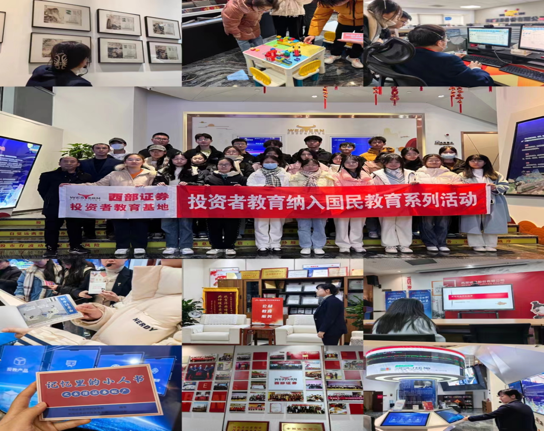 2023年12月13日下午公司金融学系老师带领2023级经济学2班全体同学赴西部证券投教基地开展专业见习活动。在西部证券讲师赵旭晖老师的带领下,同学们先后参观了投教基地、“关中八景”。随后,为同学们赠送了公司内部自制的证券科普漫画小人书,极大激发了同学们的好奇心,感受到证券行业的魅力。此外,同学们还切身体验了证券公司与客户的线上交流过程。最后,公司财富管理首席分析师王梁幸先生为同学们做了宏观经济分析框架的讲座。